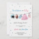 Front of a gender reveal invitation with a football, tutu, and ballet slippers on a clothesline. Text reads "Touchdown or Tutus?" in pastel colours.