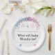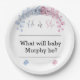 He or She, What will baby be? Blue and pink Floral spray across the top with matching booties on the bottom.