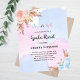 For a modern boho style baby shower, gender reveal party. A blue, pink, white watercolored background. Decorated with rose gold, pink and light blue florals, roses, pampas grass. Personalise and add a name and party details.