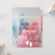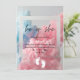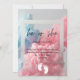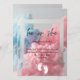 Design features coloured smoke explosion in pink and blue typography invitation.