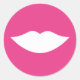 This sticker features white lips against a bright pink background, and is perfect for a gender reveal party! The background colour can be changed to fit your party's theme colours (just click the "Customise it" button under the design).