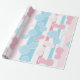 Gender Reveal Striped Blue Pink Pastel Baby Shower Wrapping Paper
