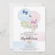 Watercolor Floral Gender Reveal Invitation with Hot Baloons. Personalise it!