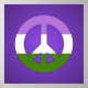 Pink poster with a peace symbol in the colors of the genderqueer pride flag. Green, white, and purple sign on a purple background