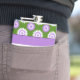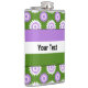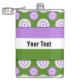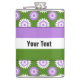 Vinyl-wrapped flask with the genderqueer pride flag and a seamless modern geometric flower pattern in the colours of the pride flag; a purple, white, and green queer pride design on a green background with an editable text template for your name or message