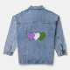 Denim Jacket with hearts in colours of genderqueer pride flag, queer pride design on purple background; green, white, and purple hearts