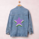 Denim Jacket with stars in the colours of genderqueer rainbow flag of purple, white and green; queer pride lgbtqiap+ design,