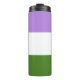 The genderqueer pride flag is a Marilyn Roxie design, esthetically similar to the gay and lesbian, bisexual, transgender, asexual, and pansexual flags; that is, horizontal bars of color with special meaning. The meaning of the colors in the genderqueer flag design are as follows: