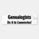 A funny family history reads "Genealogists do it in cemeteries". Many people tracing their family tree spend unnatural amounts of time looking around graveyards and cemeteries for the graves on their ancestors. To some people it may be weird but most genealogists would rather be in the graveyard then anything else.