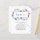 An elegant white background, decorated with watercolored pink and blue flowers and a pink and blue bow. Personalise and add a name and party details.