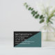 General small business card in black and slate green. Striking masculine all-purpose 2-tone business card design in black & slate green conveys strength and integrity. Ideal for engineering firms, surveyors, construction...even attorneys. Please not: All text on this card will be WHITE (not light green as shown here) unless you customise to be a different colour.