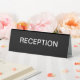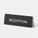 Budget friendly simple waiting room desk sign created to direct your customers or patients to the reception area in your office or medical facility. Created in classic black and white on high quality plastic with large text for added visibility with free double side printing.