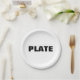 Perfect plate for your trendy generic theme party! All thrills no frills. Just the word PLATE in plain black text.