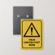 Triangle shaped yellow warning sign with exclamation mark. Custom background colour. Custom text.
