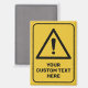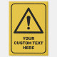 Triangle shaped yellow warning sign with exclamation mark. Custom background colour. Custom text.