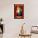 This christian vintage Genesis 1 In the beginning God created red and gold frame poster. Has a Colourful vibrant Christian vintage space design. With beautiful blue red yellow and orange colours. Looking like abstract space clouds. from a vintage photo from the 1900s.The Bible verse Genesis. 1 In the Beginning God Created.
