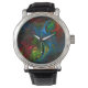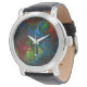 Genesis Blue Abstract Art Vintage Leather Strap with Black Leather Strap Watch