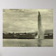 Early image of Geneva, Jet l'eau in the harbour and the alps behind. This was originally published before 1904 as a postcard image.
