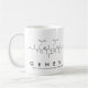Geneva spelled out in amino acids as G E N E V A (Glycine Glutamic acid Asparagine Glutamic acid Valine Alanine) on a mug for the scientist in you.