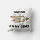 Showcase your wry scientific side with this throw pillow featuring DNA replication along with the saying "Genius Is In My Genes". Make everyone do a double-take at where you get your smarts from with a dose of scientific, educational attitude with this throw pillow!