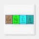 Genius spelled out as Ge Ni U S (Germanium Nickel Uranium Sulfur) on a magnet for the scientist in you.