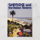 Poster shows a view of Genoa's harbour and the Mediterranean Sea.
