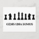 This postcard features a beautiful design of chess pieces with the slogan "GENS UNA SUMUS" which means "We are one people" in Latin. The intricate design and typography make it a perfect addition to any chess lover's collection. Whether you're sending it to a friend or keeping it for yourself, this postcard is sure to impress.