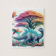 Brontosaurus jigsaw puzzle, dinosaur puzzle for kids, crystal dinosaur art, fantasy prehistoric puzzle, 110-piece small puzzle, neon foliage dinosaur, iridescent bird puzzle, unique dinosaur gifts, educational dinosaur toy, 8x10 tabletop puzzle, enchanted dinosaur decor, paleo-art puzzle, glowing prehistoric scene, creative kids’ activities, Zazzle exclusive puzzle