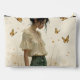 A young woman with dark, wavy hair stands in a dreamy, pastel-coloured background. Her romantic outfit, featuring a cream-coloured blouse and a floral headpiece, gives her a natural and delicate aura. Golden butterflies flutter around her, enhancing the atmosphere of lightness and harmony. The soft tones and intricate details create a poetic and serene mood.