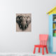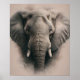 Gentle Elephant Gaze Poster. This visually striking poster captures the full face of an elephant, gazing directly at the viewer with a sense of wise serenity. The elephant's skin is depicted with remarkable detail, emphasizing the unique textures and deep wrinkles that are characteristic of its kind. The deep, soulful brown eyes convey a calm intelligence and a majestic presence, inviting contemplation and connection. Set against a soft, neutral-toned background, the composition focuses entirely on the elephant's dignified face, highlighting its strength and wisdom. This poster encapsulates the majestic beauty of one of nature's most venerable creatures, offering tranquillity and awe.