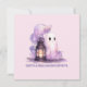 Whisper into the soft side of spooky with “Gentle Halloween Spirits,” a calming greeting card that features a friendly ghost holding a vintage lamp, surrounded by a dreamy, smoke-like pastel purple background. This artwork blends nostalgic Halloween charm with ethereal beauty, perfect for lovers of soft horror and subtle seasonal magic.