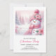 Celebrate the joy of the season with this adorable Christmas invitation for kids, designed with a cute watercolor pink coquette snowman in a snowy forest. The playful pastel tones and whimsical snowy background make this invitation a delightful choice for holiday parties, classroom celebrations, or festive family gatherings.