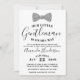 This Gentleman Baby Shower Invitation features a Faux Silver Glitter bow tie. This invite is perfect for any little man, gentleman or bow tie baby shower, The elegant design is perfect to set the tone for a black tie occasion.