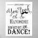 Add a touch of humour and charm to your wedding with this Gentlemen’s Bathroom Wedding Sign. Featuring elegant modern calligraphy and a playful moustache graphic, it reads: “Gentlemen, you look oh so handsome. Now get out and dance.”