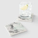 The coasters are gorgeous, a quality feel and heavy weight. They look like a precious archeological find. A rustic stone juxtaposed with a modern floral black and white print. I like the way the print goes slightly imperfect on the cut stone edges giving them a kind-of natural beauty.