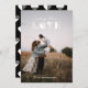 This minimalist Valentine's Day greeting card features a full-bleed photo, along with the phrase "Sending All Our Love". The sweet message combines a simple script font with a bold, hand-drawn typographic design. There is space for the customer to add their name and date at the bottom of the card. The back side of the card features a pattern of hearts made in the same style as the word "Love".