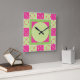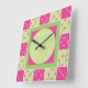 Geo Plaid Pink/Green Square Wall Clock