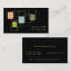 Retro geometric shapes business card in peach, lime, pale blue and army green on black. ©2010 Chocolatte Designs | E. Thompson TOTALLY CUSTOMIZABLE BY YOU!