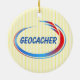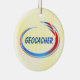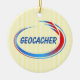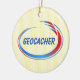 Geocacher text with an blue and red oval splash is a unique geocaching gift design for cachers at birthdays, holidays and geocaching events.