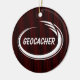 Geocacher text with an white oval splash is a unique geocaching gift design for geocaching friends and family at Christmas.