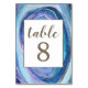 Geode Agate Gemstone Wedding Table Number Cards - feature a watercolor print in shades of blue and purple. This design is also themed with faux gold foil and printed faux gold modern font lettering. View the entire collection found on this page to complete the look of your event.
