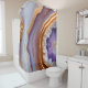 The pair of curtains feature a striking design resembling a geode or agate stone cross-section, with layers of lavender, light blue, white, and gold on the outer edges, transitioning to deeper purple and brown hues towards the centre. The central focal point is a vibrant purple and white crystalline structure, surrounded by a golden border. The overall effect is visually captivating, giving the impression of a natural mineral formation.