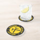 Geologist - yellow and black sandstone coaster with collegiate style lettering and crossed rock hammers graphic.