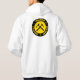 Geologist - yellow and black design with collegiate style lettering and crossed rock hammers graphic on hooded sweatshirts in black, charcoal, navy, ash or white. Two-sided print version, small image on front, full size on back.