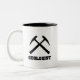 Geologist mug with crossed rock hammer symbol. Makes a great school or office gift.