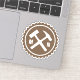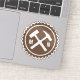 This "bottle cap" style badge features a geologist's favourite rock-bashing implements: a rock hammer and hand sledge! The perfect tools for beating rock samples into submission!