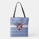 This stripey tote bag is perfect for a geologist! The bag features a classic crossed rock hammer logo filled with the US flag on a background of trendy blue stripes.