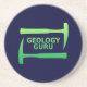 Geology Guru - dark blue coaster with green lettering and rock hammers.