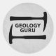 Geology Guru - grey sticker with black lettering and rock hammers.
