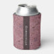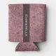 Delicate photo of pink rock texture covers the major part of this can cooler. There is a vertical semitransparent name banner. Banner is black, and text is light grey or light brown.